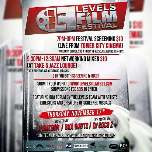 November 17th from 7:00 p.m. - 9:00 p.m., check out the Levels Film Festival which will display a variation of skits, HQ Music Videos, short films and etc. live from Tower City Cinema. It will be hosted by Vigatron and BKA Watts with music by DJ Coco Z.