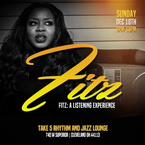 [Cleveland, OH] Fitz: A Listening Experience | Take 5 Rhythm and Jazz Lounge | Dec. 18th 8 pm-10 pm Check out singer, Esther Fitz as she performs at Take 5 Rhythm and Jazz Lounge on December 18th from 8 pm - 10 pm. EventsTasha MackDecember 18, 2016Music, Jazz lounge, Cleveland, Singer, Ohio, R&B, Esther fitz, Take 5Comment Facebook0 Twitter LinkedIn0 Reddit Tumblr Pinterest0 0 Likes