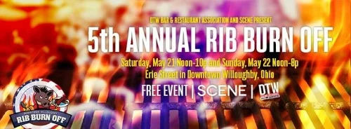The Rib Burn Off is taking place in downtown Willoughby, OH. on May 21st 12:00 p.m. - 10:00 pm and Sunday, May 22nd 12:00 p.m.- 8:00 p.m.